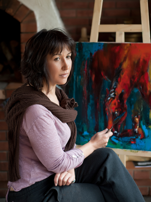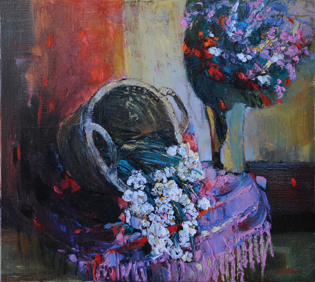 Работы Анны Зарницкой – цветовой фейерверк, захватывают словно вихревым движением, превращая обыденные предметы и фигуры в волшебные персонажи.