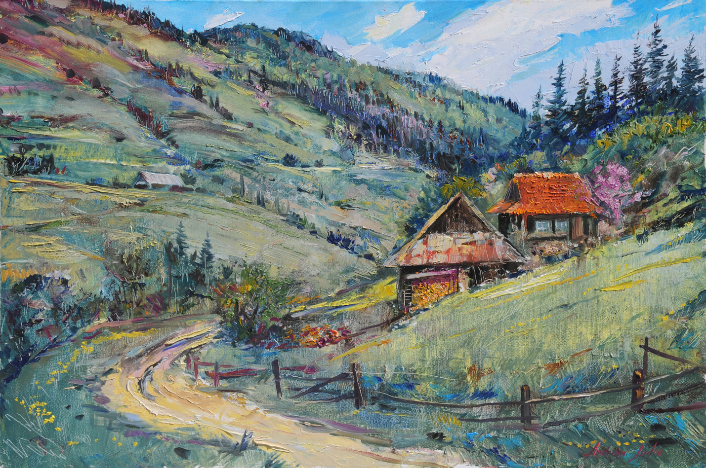 Художник Андриан Жудро никогда не перестает учиться у природы и его работы (холст, масло), привезенные из поездки на пленэр, это подтверждают. Но в каждой работе на первый план выступает его индивидуальность. Насыщенная цветовая гамма, много "плотного" воздуха, необычная подача обычных окружающих нас в быту предметов при тяготении к реалистичности изображения – отличительная особенность всех работ Андриана Жудро.